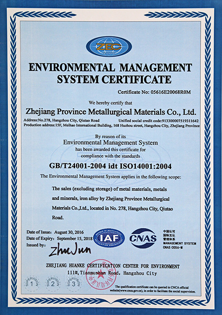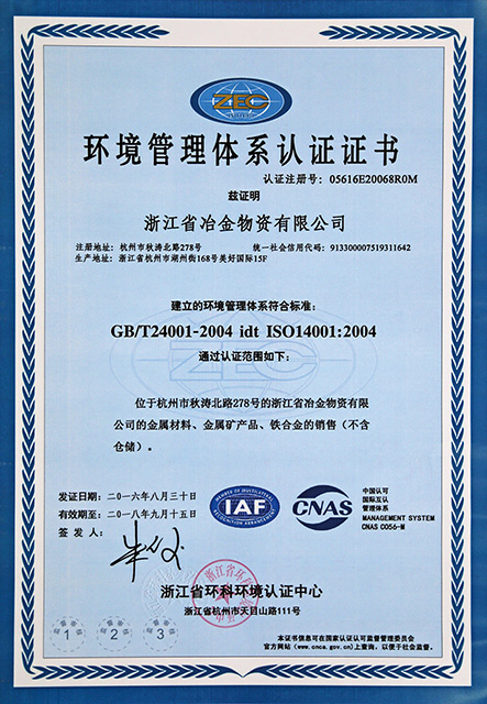環(huán)境管理體系認(rèn)證證書(shū)(中)
